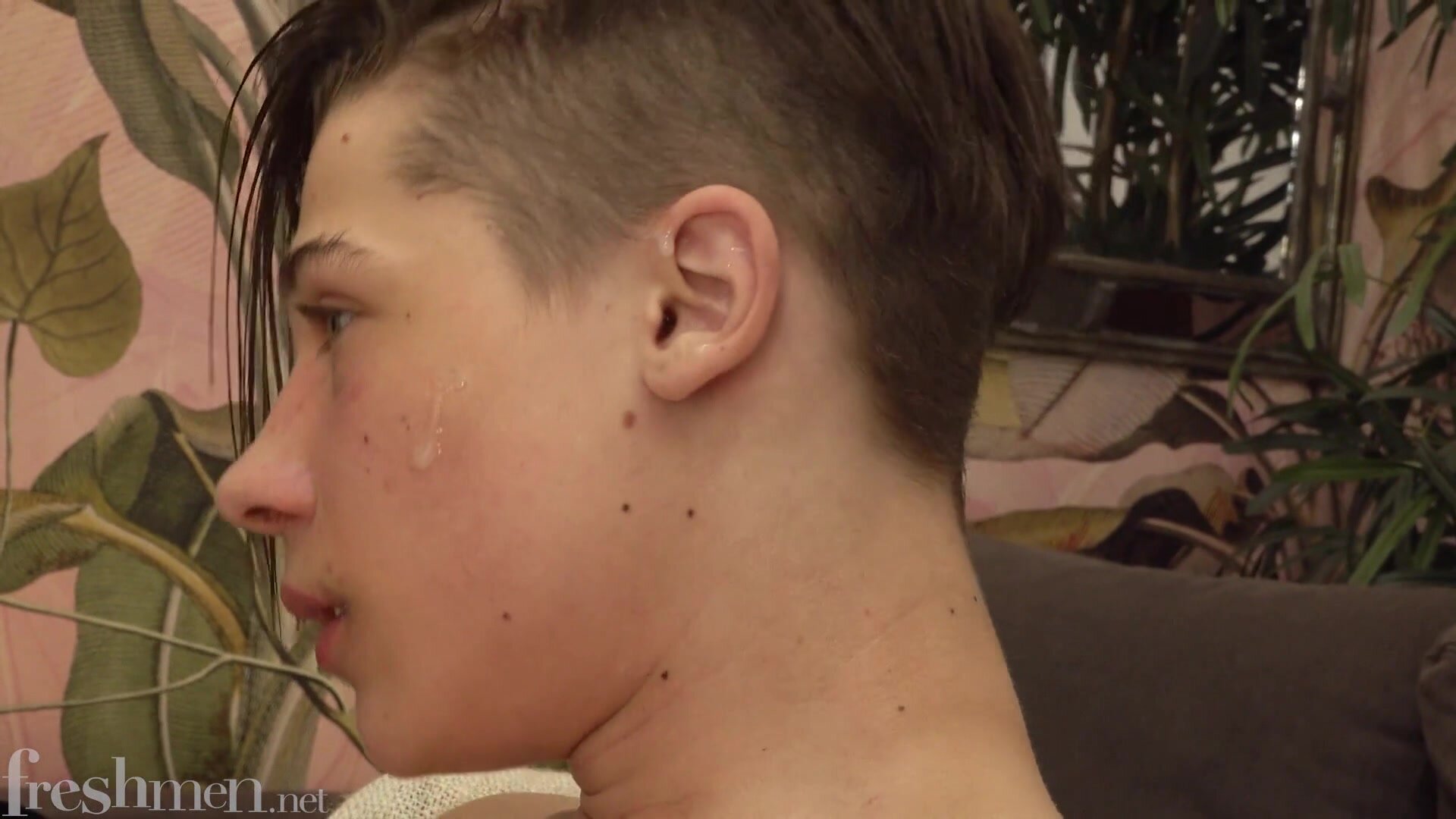 Donnie Gifford is a 19-year-old boy from Prague. This young rascal is not afraid to get undressed and stroke his naked body in front of an audience. After a while, he reaches down and grabs his uncut cock, stroking it until he climaxes. His explosive finale leaves drops of cum all over his face and body.