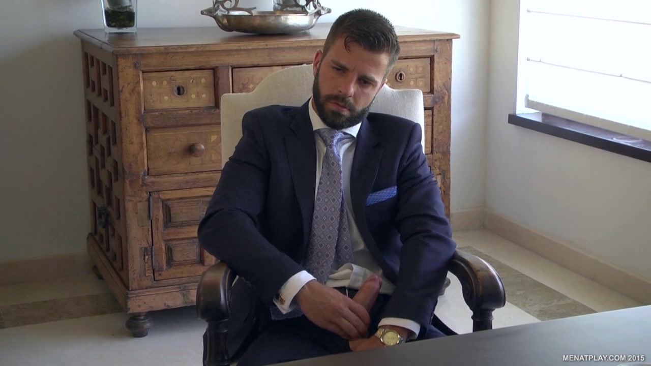 What a beautiful piece of beef to put between a suited sandwich! The ever stunning Flex gets played like a rich playboy’s toy, as the obliging servant of Hector de Silva, in this weeks “MANSERVANT”. Handsome Spaniard Hector returns as the wealthy business man who likes to show off and conduct meetings in his hillside villa. When sexy young associate Xavi Duran notices the stunning new butler, half naked after having a relax in the pool on his day off, the two tycoons decide to have a little fun. The subservient Flex knows his place and is happy to go down on his Masters house guest. Hector is so turned on by the show he finds he needs servicing too. Before long both Flex and Hector are doing all they can to give Xavi a welcome he won’t forget simultaneously sucking on his thick hard dick. With both businessmen primed and ready for some carnal action, they take turns to fuck, rim, and get sucked off by Flex as his stacked body kneels doggy style on the table just asking to be used. What follows is pure Tag-Team Spit-Roast Heaven!