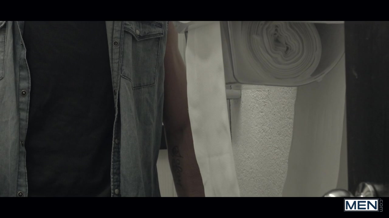 While at a truck stop he signals to the sexy stud in the next stall that he’s horny and down to fuck.