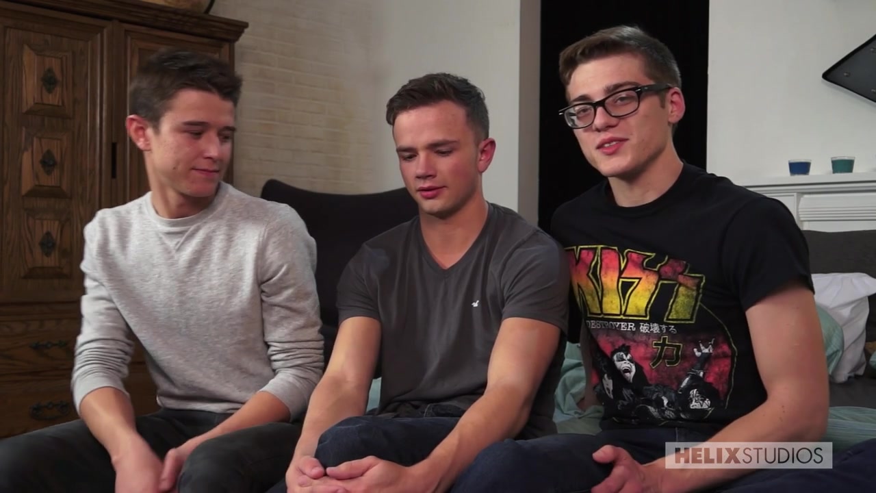 It's another Q&A 3way on this latest installment of the #helix! This time, the twink trifecta is comprised of all super sexy, former high school wrestlers. Hear hot jocks Logan Cross, Blake Mitchell & Evan Parker, answer all of your online queries about their teen grappling glory days, to when they first discovered gay porn, to weirdest fuck locations & more! Don't forget to stick around after the online interview for a triple threat threesome fuck frenzy that's sure to have you tapping out.