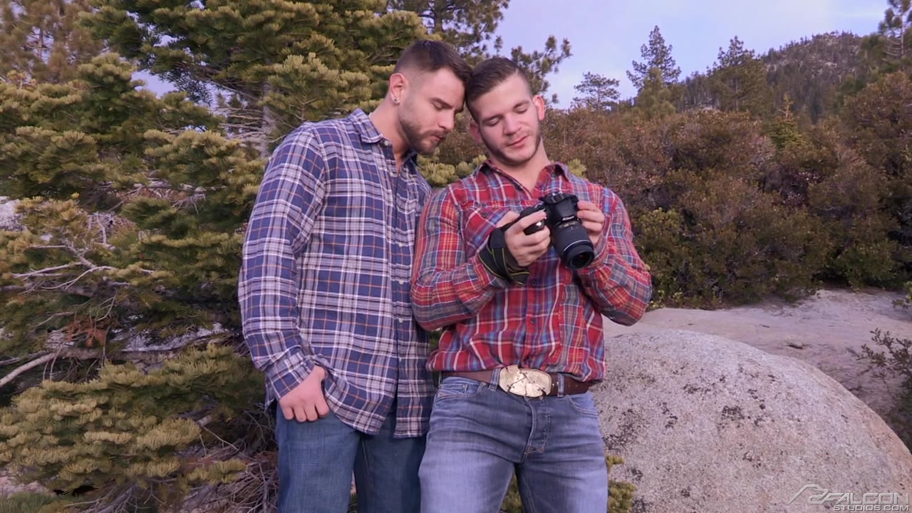 After a hike in the brisk mountain air, Angel Rock and Nick Sterling get warm in the bathtub. They have matching chin beards, beefy bodies and torsos sprinkled with dark hair. While they kiss, Angel's fat cock, fully erect, beats its demands against Nick's flesh. It dominates the scene. Nick responds with an open mouth, engulfing Angel's column; his throat expands and constricts as he swallows and releases, and swallows again. Angel twists Nick's nipples as if they were dials to turn up the heat, then he spins Nick around to get at his buns, licking and probing them until they're dripping with saliva. Nick gasps when Angel stands and plunges his cock into him, and they surrender to a splashy, two-position fuck. On the verge of orgasm, Angel collapses on the edge of the tub. He expels gobs of cum that drip down Nick's lips and chin and which he smears all over Nick's face with his cock as Nick erupts onto his stomach. They share a kiss that's wet with Angel's spooge.
