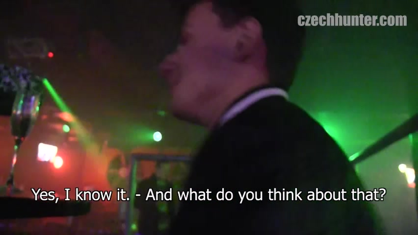 Time for some clubbing. It is Thursday evening. Well actually close to midnight. And I am in the most popular Techno Clubs in the centre of Prague. But today it is not so crowded. I was a bit worried about the camera which I smuggled into the club. But until now nobody complained. So I approached a boy on a table. It was a promising interview. But then his friend came and the boy changed his mind. Tough shit. Anyway. I went on and I started to talk to a boy on the bar. A really likeable guy. He came from Ostrava and showed me his bare chest in the middle of the club. So I made an irresistible offer and we managed to go downstairs into the storage room for some fun.