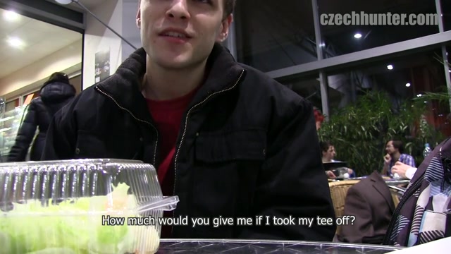 Maybe I have a feeble for students. I recently met a lot of them. I often hunted in front of the Highschool of Economics here in Prague. But this time I went a step further and tried my luck in the Mensa. I was surprised – not the communist style I expected but a nice, bright new interior. The Mensa wasn’t actually overcrowded as it was already late afternoon when I arrived. The most guys there were sitting together in a group. Only four or five cuties were alone. So I went straight to one of them and took a seat at his table. He wasn’t so friendly in the beginning. He was starring at my cam. But when I told him that this is a little project where he could make good money he quickly agreed to suck me on the toilet