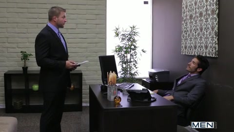 Office assistant Colby Jansen has earned a special treat from his boss Dale Cooper and decides he’d like to be boss for a day. He turns out to be a very good boss and sucks, rims and fucks Dale silly!