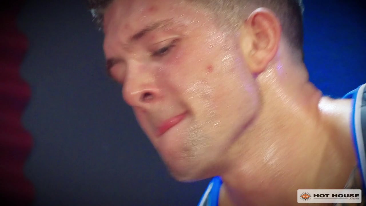 Mikoah Kan is down on hands and knees and untying Sebastian Kross' jock to reveal what hot, huge surprise lies underneath. After Mikoah unleashes the beast, Sebastian shoves his long cock down Mikoah's windpipe without hesitation. The throat fucking commences and Mikoah takes Sebastian's massive member fully and energetically. Sebastian returns the favor and gives Mikoah an intense and soaking wet rim job to loosen up his hole. Getting him ready for the power pounding to come, Sebastian breaks out a huge toy, working over Mikoah's hole with a massive Manrammer, stirring it around in Mikoah's gut. With Mikoah's hole prepped for genuine cock, Sebastian fits his hefty meat into Mikoah's eager hole. Mikoah stays down while Sebastian pile-drives his ass from behind. Switching positions, Mikoah hops on top and lets Sebastian fuck up into him until he lies on his back and takes Sebastian's thick load in his mouth. With both of them drained, they share a cummy kiss