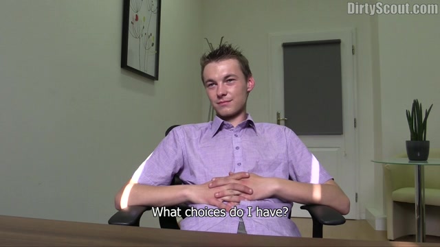 I think confidence is a very useful trait. But today applicant was too much. He came dressed like to a disco and acted like he owned the place. I almost start laughing when this wimp asked for 30 000 Crowns. Come on, be serious! The warehouse job didn’t exactly drop his jaw, nor did my dirty proposition. The other boy today was a combination of shy and smart-ass. He studied at a medical school but ended up being a gardener, life can be strange sometimes. I think he saw the job as a opportunity to change his life. But the fee was simply too much. I have a soft spot for footballers so I had to convince this innocent boy to do some nasties. I was still angry about the first guy so I asked quite bluntly. And he agreed! Why are the most innocent the easiest to corrupt?