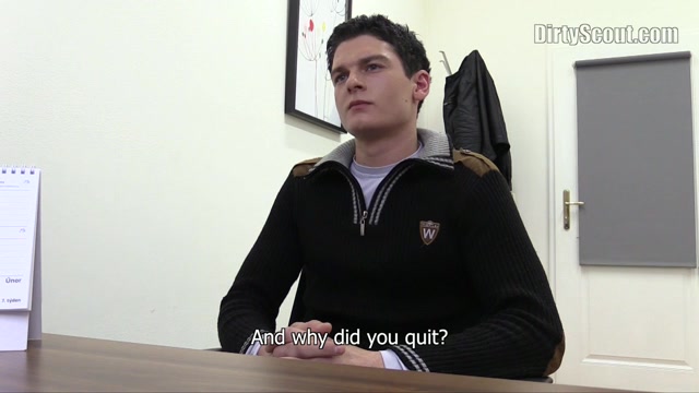 When the first applicant appeared I noticed some strange dialect. After a while I had to ask where he came from. He was from Macedonian, a tiny country between Greece and Serbia. I didn’t even know they have so handsome young men over there. However, I gave my best to describe the vacancy I was about to offer as good as I could. I could tell from his eyes that he was really interested. He came here for a better life and my offer perfectly matched his dreams. As I supposed he also wasn’t able to pay the 5 000 CZK registration fee. So I offered him to strip naked instead. He wasn’t shy at all but all he wanted was a guarantee that he would really get the job afterward. Then he finally started to show me his body. Wow… he was so damn hot.