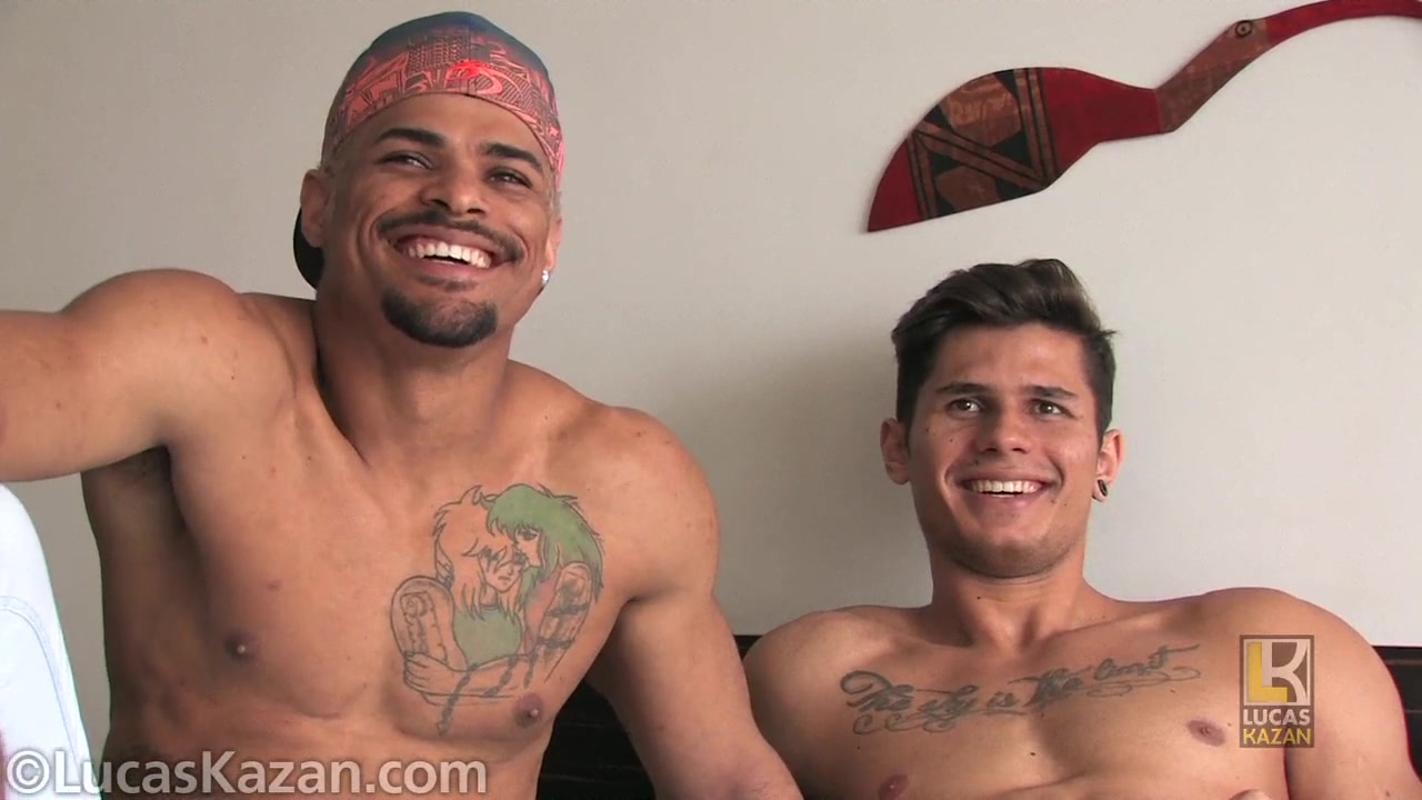 It's 'Brazil month' at LucasKazan. Beginning with Hugo and Douglas in a flip-flop for director Ettore Tosi. Both hunks self-identify as gay. Both flash gorgeous smiles --when they do smile. Hugo, 24, is single. Douglas, 28, in a relationship. "I taped Hugo a year ago in Rio for a solo", says director Tosi. "I wanted to see him in action in a Private Sex File and Douglas proved the perfect match."