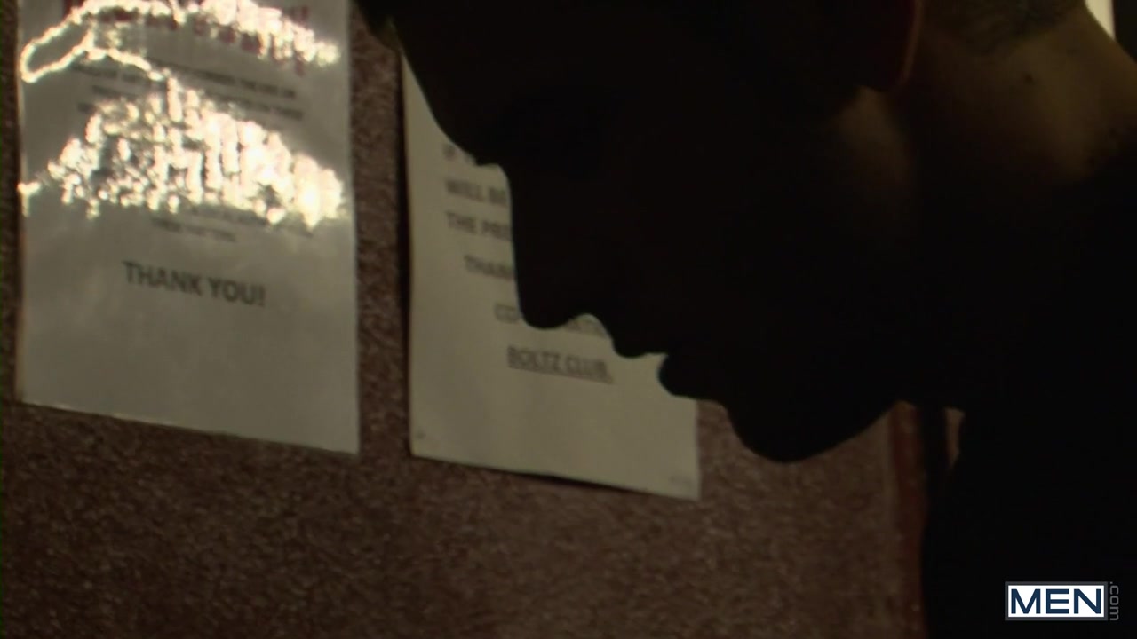 Gabriel Clark sits in a cafe, Dan Broughton passes by, they meet with a gaze, Gabrielle follows Dan, Dan enters an adult movie theater, Gabrielle goes there, they have sex - Dan Broughton, Gabriel Clark
