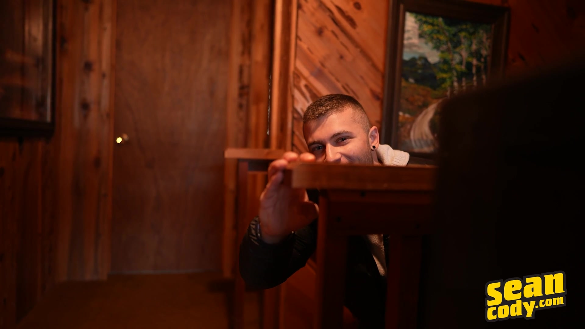 As the day begins at the cabin, Josh, Justin, and Sean are cuddled up in bed together, making out so intently they don't even notice Devy sneaking into the cabin and up the stairs to peep on them! Sean and Justin take turns sucking Josh's cock, then Justin sucks them both before taking Josh's dick doggystyle as he sucks Sean's cock. As Devy watches, rubbing his hardening dick, Justin and Josh 69, with Sean lifting Justin by the ankles so he can fuck Josh's mouth too! Then it's Sean's turn to take Josh's cock before Justin gets a chance to fuck Sean. The bottom cums and Josh gives Sean a big facial, then Justin pulls out and cums... before they discover Devy, naked and playing with himself!