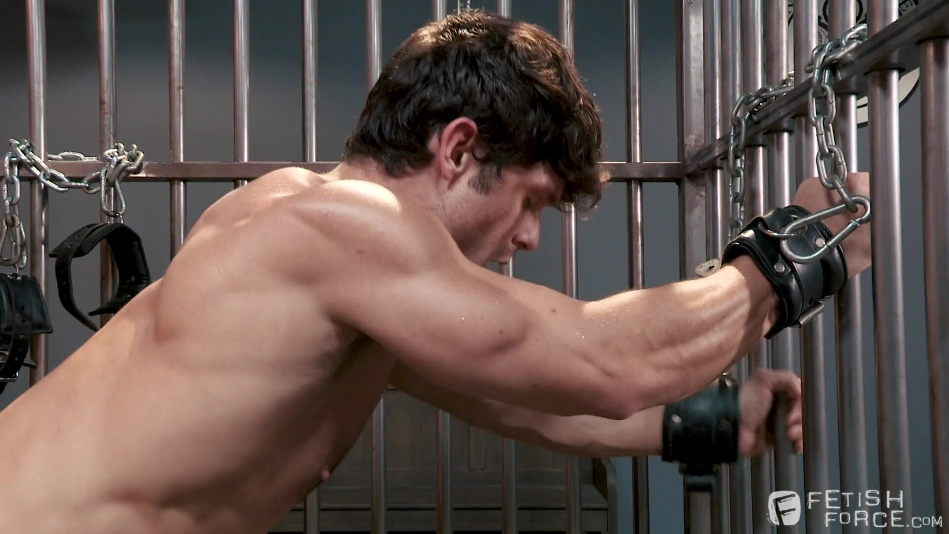 Officer Drew Sebastian can't get enough of domineering his private pleasure prisoner, Devin Franco, and takes his time plowing and pounding Devin's gorgeous muscular ass and plundering his hole in a variety of positions, but always shackled and restrained. This prison guard is a devilish deviant with a particularly thick daddy dick, and Drew knows that if he gives Devin an inch, he's going to want all of it. Growling and grunting like a crazed animal, Devin backs into Drew's every thrust in delirious piggy pleasure. Finally, Devin cums all over his own ripped belly, prompting Drew to spew on him too, hosing him down with his jizz. In the end, Drew takes out a marker and tags 'Prison Bitch' across Devin's chest for all the inmates to see it in the yard, followed by promising to protect him, the guard literally marks his territory and Devin resigns himself that he is now Drew's personal property at 'Submission Prison'.