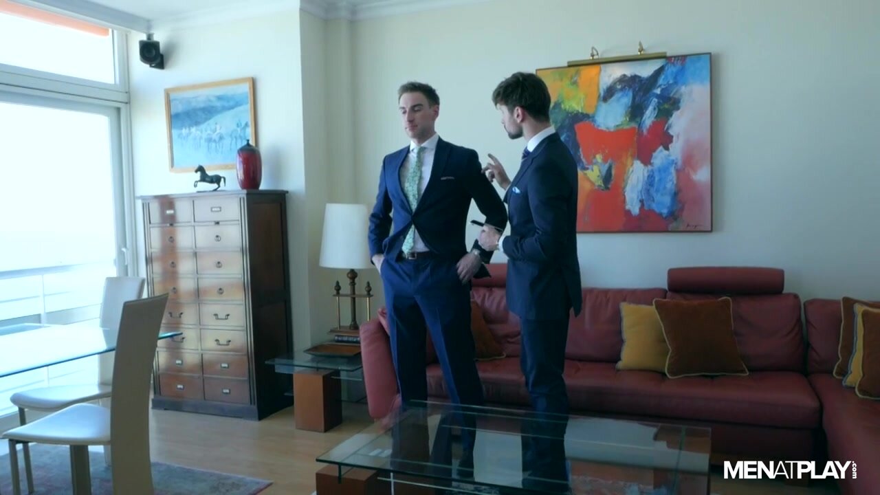 Seemingly not caring much about being tardy, again, Drew asks Kayden why they never get to enjoy the properties they list... ‘for personal use’. And, while probably improper, the suited studs get to work on each other, even at the risk of getting caught.